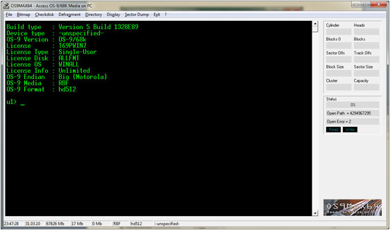 Read/Write/Format/Backup/Restore/Clone/Defragment OS-9 Disk on PC