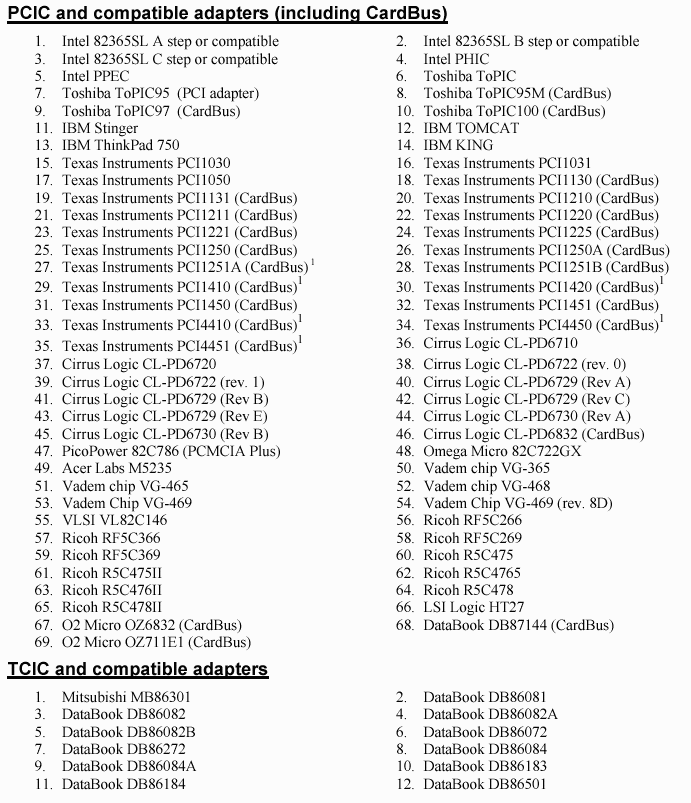In addition we provide a low-level programming interface for Win95 and WinNT which allows to access any PC Card format (Non-DOS,Non OS-9) on PC.