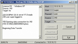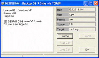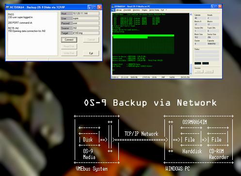 OS9MAX allows to backup OS-9 disk devices to PC. The OS-9 disk will be linked