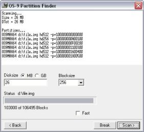 OS9MAX64 now scans automatically for all OS-9 partitions on a single disk