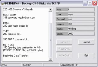 Backup and Restore OS-9 disks via TCP/IP